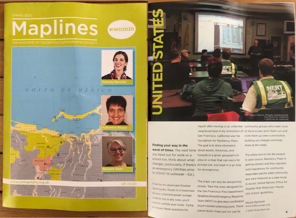The spring 2020 issue features the work of women cartographers; we contributed a one-page origin story about Resiliency. Huge shoutout to Caroline Robinson for nudging submissions for the mag from the excellent Women in Geospatial+ group.
