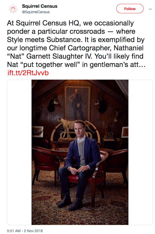 Jamie Allen and Nat Slaughter were trading lobs at a sandwich shop with some friends in the Inman Park neighborhood of Atlanta. Allen tossed out an idea for a short story he was writing, mentioning that for research he needed to work out how many squirrels lived in Inman Park. Slaughter countered that he had an interest in data visualization and maps and could help out.
