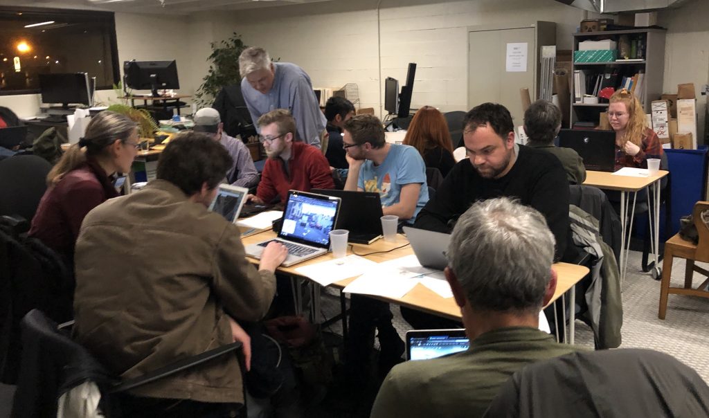 - It works well with a range of experience levels. There were about 25 of us, including a group of GIS students new to OSM who made the trek from the South Bay as part of an assignment as well as a core group of Maptimers already nimble with the platform. Other participants work in tech but are also new to OSM and interested in making maps of their specific neighborhoods or a couple of people with expertise in health care looking to make resiliency maps from that angle.